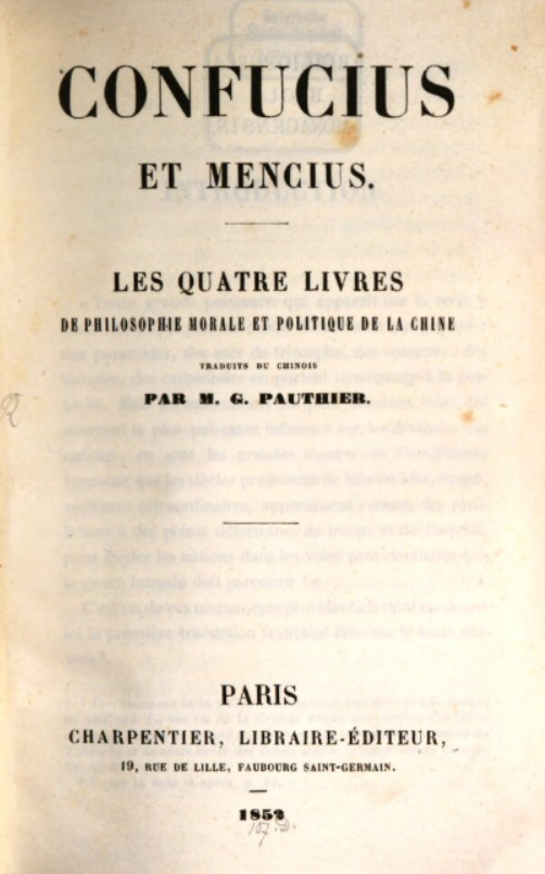 | Full Title | Confucius et Mencius. Les Quatre Livres de Philosophie Morale et Politique de la Chine |