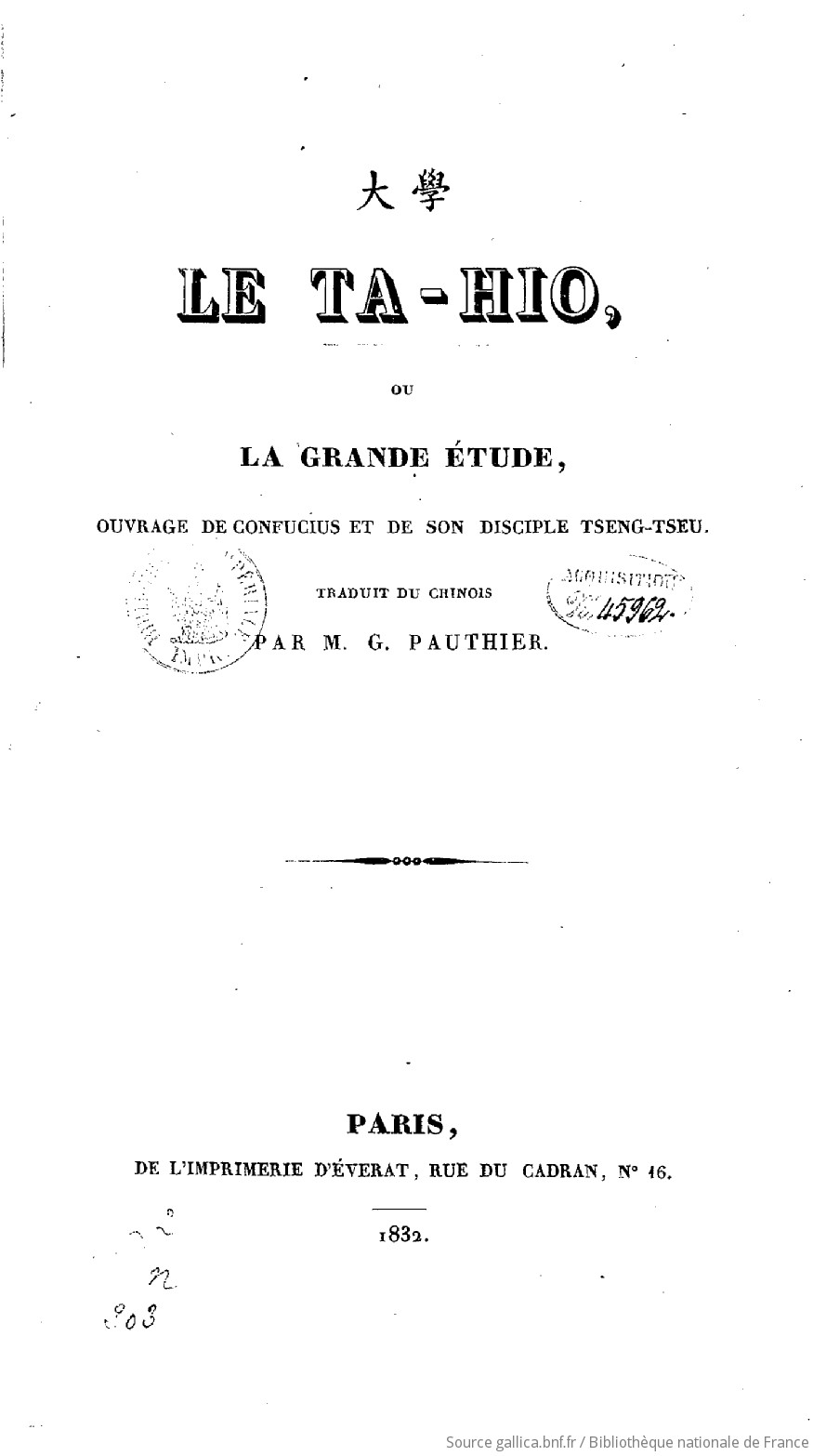 Full TitleLe Ta-Hio, ou la Grande étude, ouvrage de Confucius et de son Disciple Tseng-Tseu